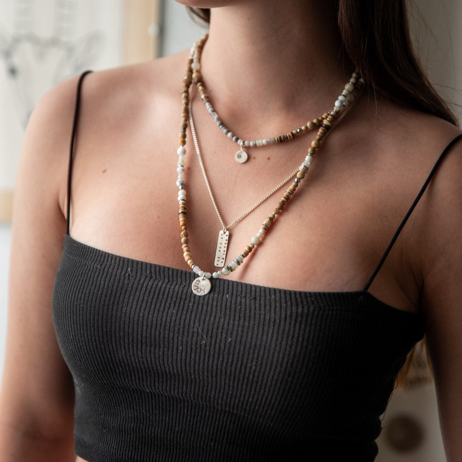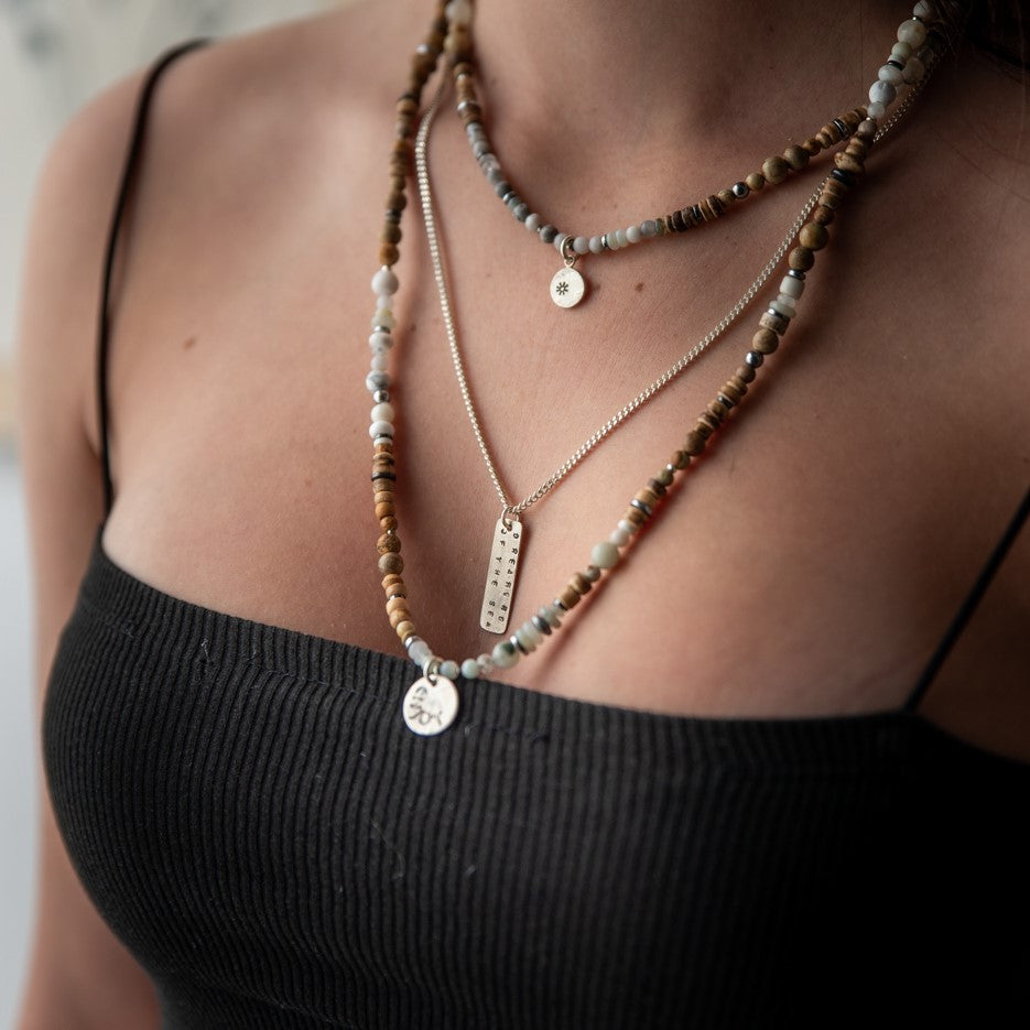 שילוב של שתי שרשראות אבנים טבעיות בגווני חום ולבן